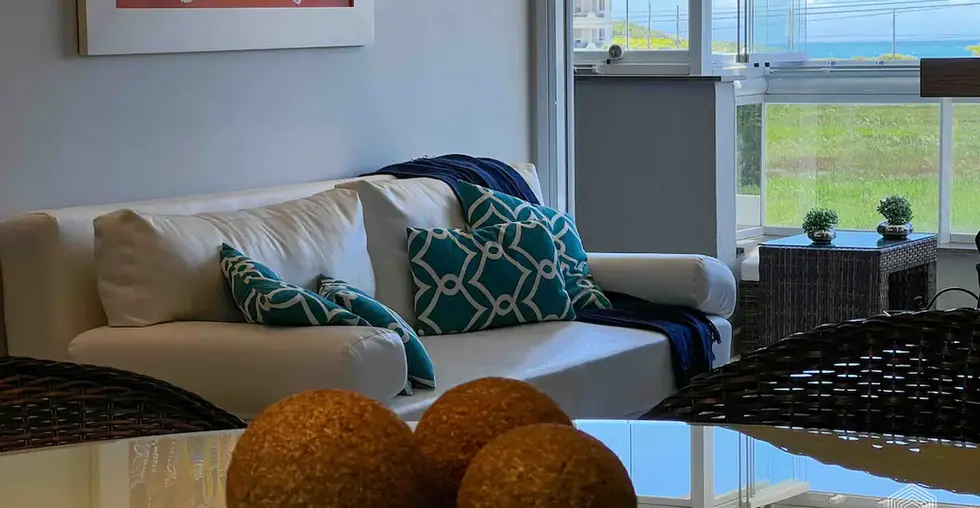 - Varanda com vista para o mar com churrasqueira, cervejeira e móveis externos;
