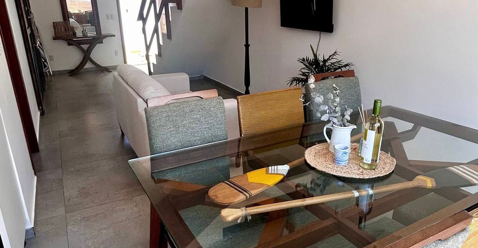A apenas 100m da praia, com vista para o mar, com 3 quartos, 2 banheiros, 1 sala ampla, cozinha completa, churrasqueira, pátio, estacionamento para 2 carros. Wi-Fi e ar condicionado em todos os dormitórios. Casa moderna, sendo pensada nos pequenos detalhes para trazer conforto e praticidade para sua estadia na praia. Chuveiros com aquecimento a gás.